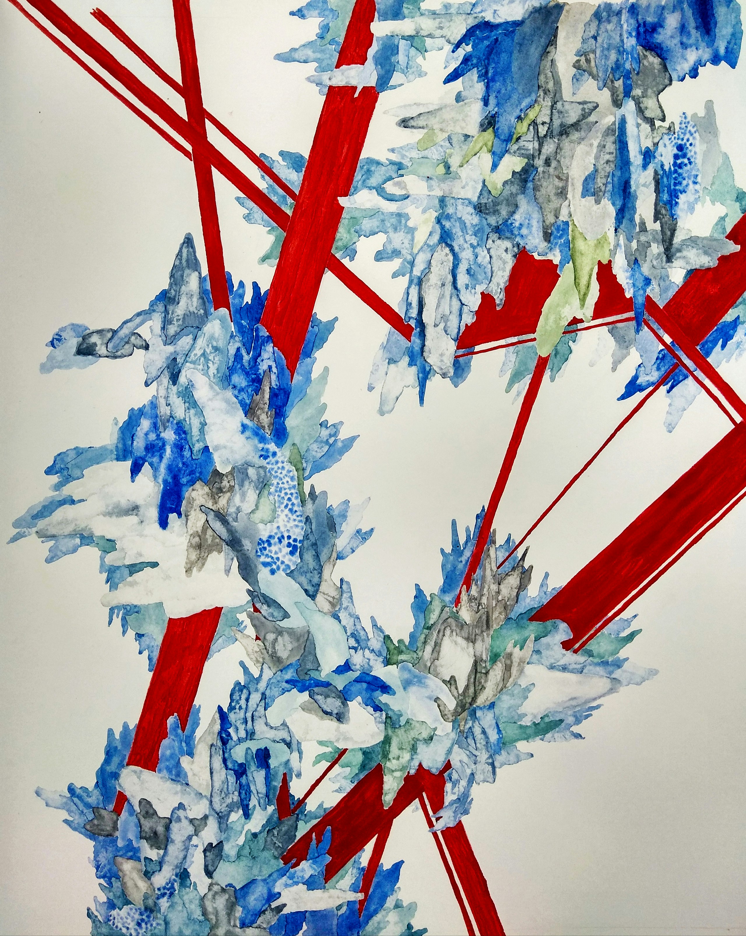 This innocent little water colour seemed to run into a bit of geometry. Red was a bit of a bold move, but I love the way it came out